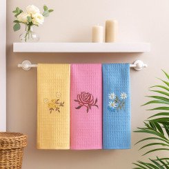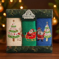 Комплект махровых полотенец для кухни 3 шт. "Ambiella" Праздничное кремовый/зеленый/синий 30*50 см