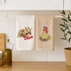 Комплект махровых полотенец для кухни 2 шт. "Ambiella" Олива бежевый/зеленый v1 30*50 см