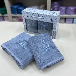 Комплект махровых полотенец 2 шт. "Ambiella" Якорь синий 50*90 см, 70*140 см