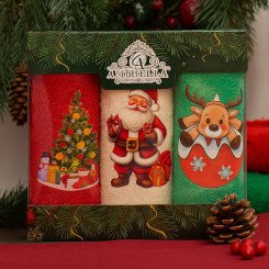 Комплект махровых полотенец для кухни 3 шт. "Ambiella" Noel кремовый/зеленый/красный 30*50 см