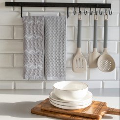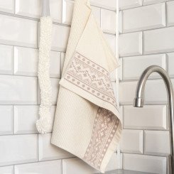 Кухонные полотенца изготовлены из 100% хлопка, гигроскопичны, т.е. очень хорошо впитывают влагу, хорошо пропускают воздух, быстро сохнут, что является преимуществом при использовании на кухне. Так же преимуществом является наличие петли для подвеса на полотенцедержатель. Изделия надолго сохраняют свою форму, цвет даже при повседневном использовании и стирке. В коллекции имеются несколько видов полотенец для кухни: