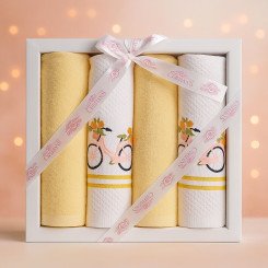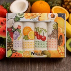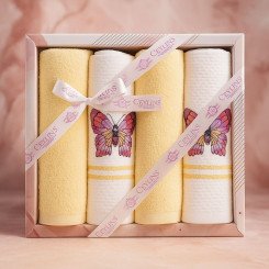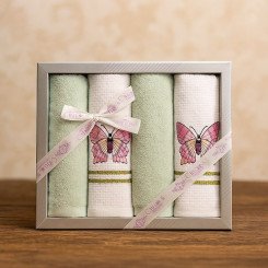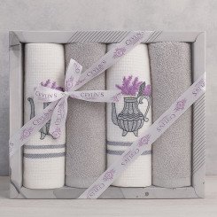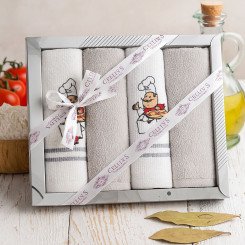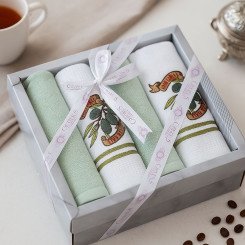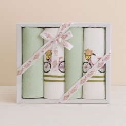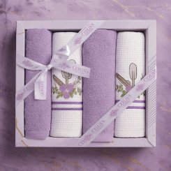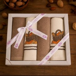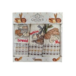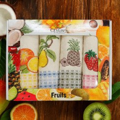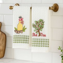 Полотенца для кухни представлены в наборами по две штуки изготовленные их вафельной ткани, декорированные отделкой в виде вышивки и наборы из четырех штук изготовленные из махровой ткани. Преимущество вафельного - материал впитывает в несколько раз больше, чем любые другие ткани и быстро сохнет. Благодаря натуральному составу полотенца обладают отличной износостойкостью и прочностью. Преимущество махрового полотенца - обладает отличными воздухопропускающими свойствами, турецкая махра отлично впитывают влагу.
