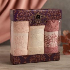 Комплект махровых полотенец 3 шт. "Celin's" Kalpli розовый 30*50 см