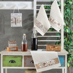 Комплект махрово-вафельных полотенец для кухни 4 шт. "Ceylin's" Кофемолка/коричневый 40*60 см