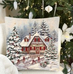 Декоративная наволочка "Гобелен" Снеговики Домик 45*45 (±2) см