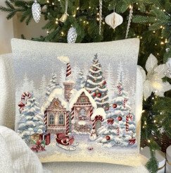 Декоративная наволочка "Гобелен" Снеговики Пряничные домики 45*45 (±2) см