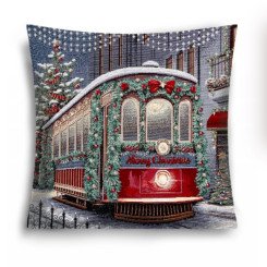 Декоративная наволочка "Гобелен" Зима Вена Трамвай серебро обр.сторона - бордо 45*45 (±2) см