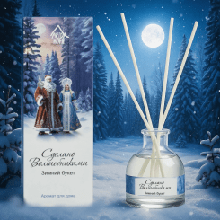 Комплект состоит из флакона и набора палочек, и упакован в подарочную коробку с фирменным логотипом.