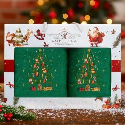 Комплект махровых полотенец 2 шт. "Ambiella" Праздничное зеленый Ёлки 50*90 см, 70*140 см