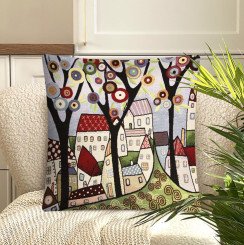 Декоративная наволочка "Гобелен" Домики Живерни серебро 45*45 (±2) см