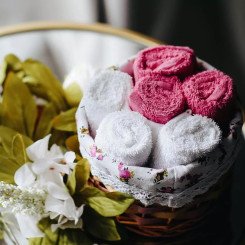 Комплект махровых салфеток 6 шт. "Arya" Garden белый/розовый 30*30 см