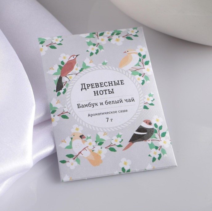Коллекция "Древесные ноты" от бренда "Индокитай" - это ароматические саше разных ароматов. Вес одного саше 7 грамм. Они компактны, хорошо упакованы, подходят для размещения на полке, стопке белья, в салоне автомобиля. «Бамбук и белый чай» - этот аромат воплощает в себе философию природной чистоты и спокойствия. Свежий старт композиции открывается легкими, воздушными нотами молодого бамбука, создающими ощущение утренней свежести и природной чистоты. Сердце аромата наполнено изысканными оттенками белого чая, которые раскрываются нежной, бархатистой текстурой с легкими травянистыми акцентами. Базовый шлейф оставляет мягкое, обволакивающее послевкусие, напоминающее о свежести горного воздуха и природной гармонии.