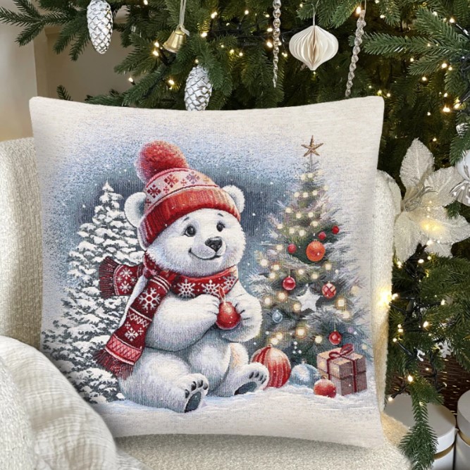 Декоративная наволочка "Гобелен" Белый мишка 45*45 (±2) см