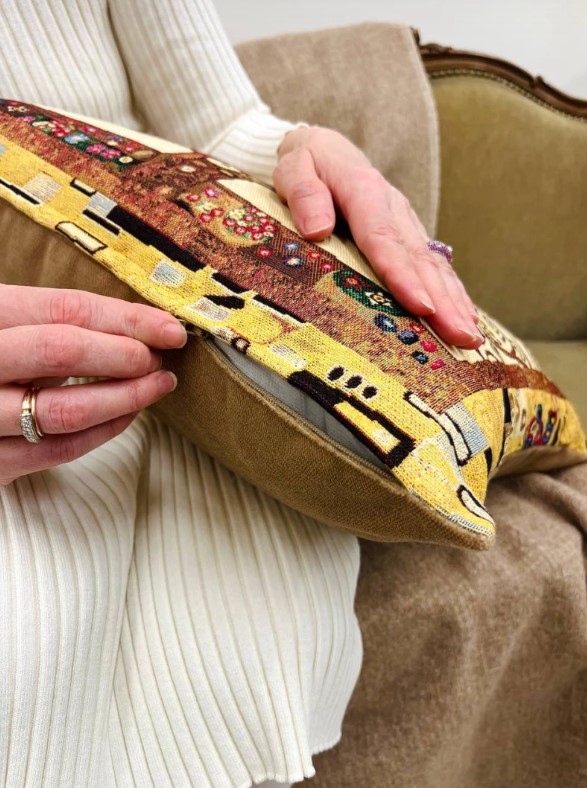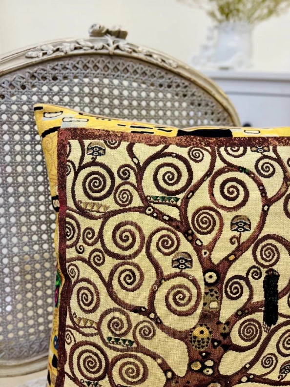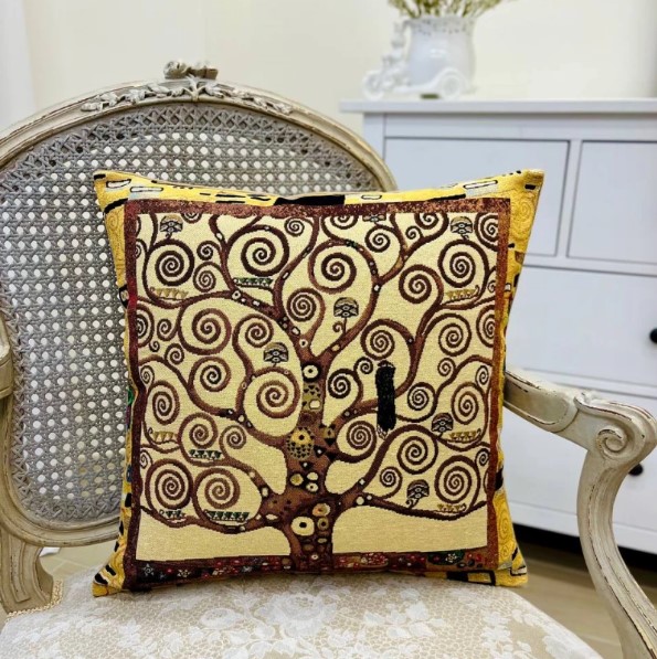 Декоративная гобеленовая наволочка «Древо жизни» по мотивам шедевра Густава Климта — воплощение художественной гармонии в деталях. Размер наволочки делает её идеальным акцентом для любого интерьера: от классической гостиной до уютной спальни. Центральный мотив — знаменитое «Древо жизни» с его завораживающими спиралями и витиеватыми ветвями, словно застывшими в танце времени. Тёплая гамма коричневых, золотых и бежевых оттенков наполняет пространство ощущением уюта и спокойствия, а изысканная проработка деталей придаёт изделию уникальность. Состав ткани обеспечивает одновременно мягкость и износостойкость, а скрытая молния делает использование максимально удобным — смена чехла не займёт много времени. Обратная сторона из высококачественного велюра бежевого цвета не только приятна на ощупь, но и гармонично дополняет лицевую сторону, создавая эффектный контраст. Эта наволочка станет не просто элементом декора, а настоящим произведением искусства в вашем доме, соединяя эстетику модерна с практичностью современного