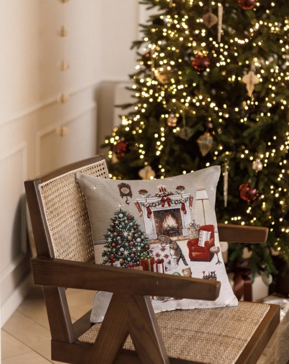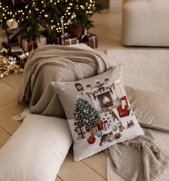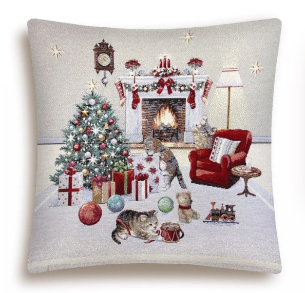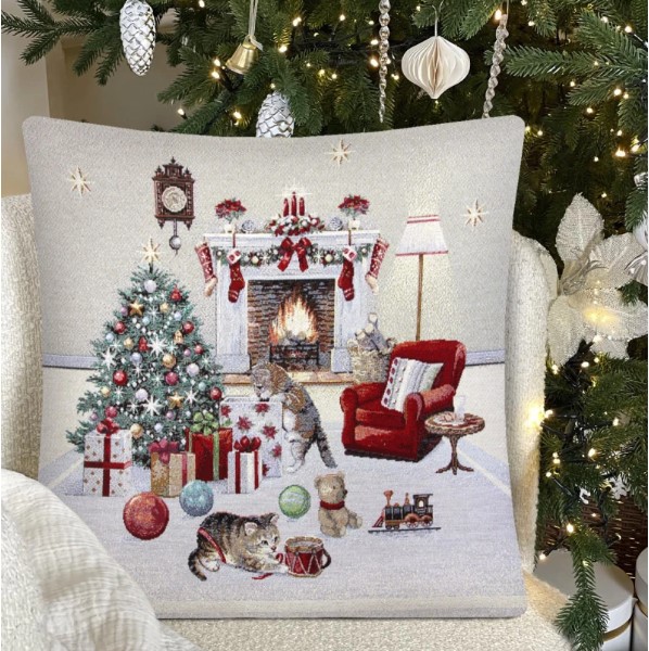Декоративная наволочка "Гобелен" Котята у камина серебро 45*45 (±2) см