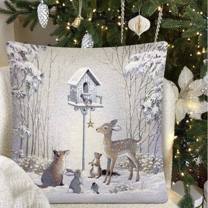 Декоративная наволочка "Гобелен" Лесные друзья у кормушки  40*40 см
