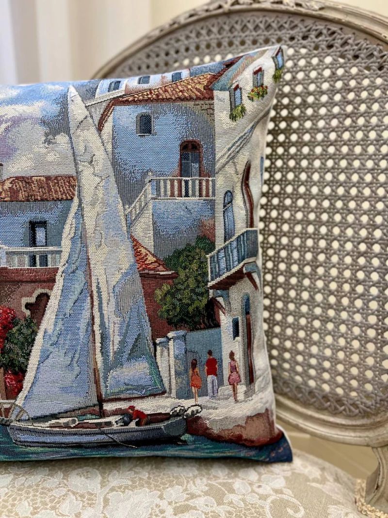Гобеленовая декоративная наволочка с красочным рисунком поможет украсить диван, кресло на даче, в доме и квартире. Гобелен - ткань с правильным переплетением пряжи, сотканная из шерстяных, синтетических и хлопчатобумажных нитей. Добавление акрила и полиэстера дает возможность сохранять цветовую насыщенность, износостойкость и предотвращает усадку и потерю цвета. Ткань для наволочек закупается на двух лучших ткацких фабриках Испании, высокий уровень качества которых подтвержден сертификатом качества OEKO-TEX Standard 100 и многолетней безупречной работой на Европейском рынке. Наволочка подходит для подушек размером от 45 до 50 см, снабжена молнией.