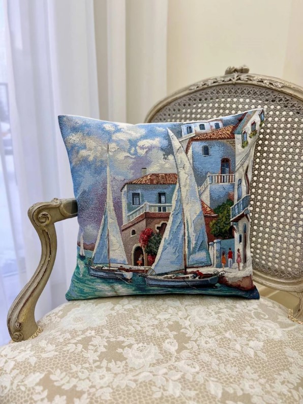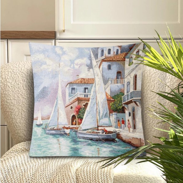 Декоративная наволочка "Гобелен" Море Причал 45*45 (±2) см