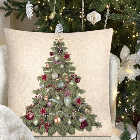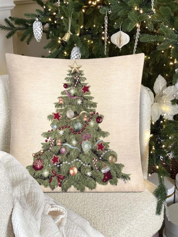Декоративная наволочка "Гобелен" Новогодняя елка люрекс золото 45*45 (±2) см