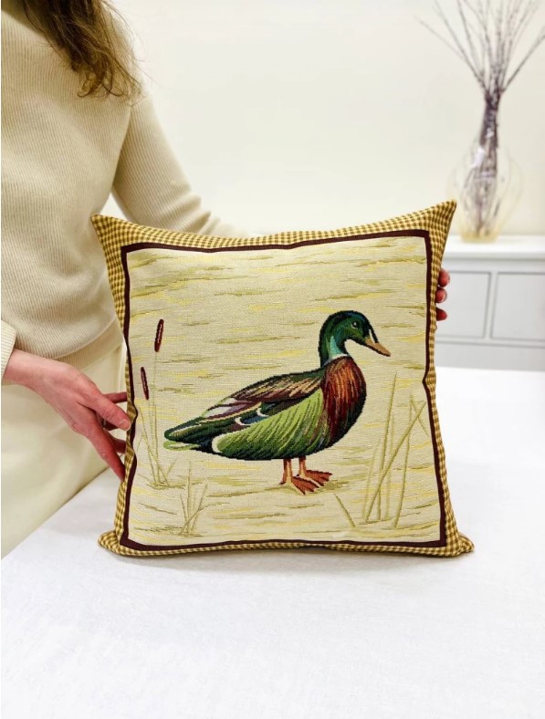 Гобеленовая декоративная наволочка с красочным рисунком поможет украсить диван, кресло на даче, в доме и квартире. Гобелен - ткань с правильным переплетением пряжи, сотканная из шерстяных, синтетических и хлопчатобумажных нитей. Добавление акрила и полиэстера дает возможность сохранять цветовую насыщенность, износостойкость и предотвращает усадку и потерю цвета. Ткань для наволочек закупается на двух лучших ткацких фабриках Испании, высокий уровень качества которых подтвержден сертификатом качества OEKO-TEX Standard 100 и многолетней безупречной работой на Европейском рынке. Наволочка подходит для подушек размером от 45 до 50 см, снабжена молнией.