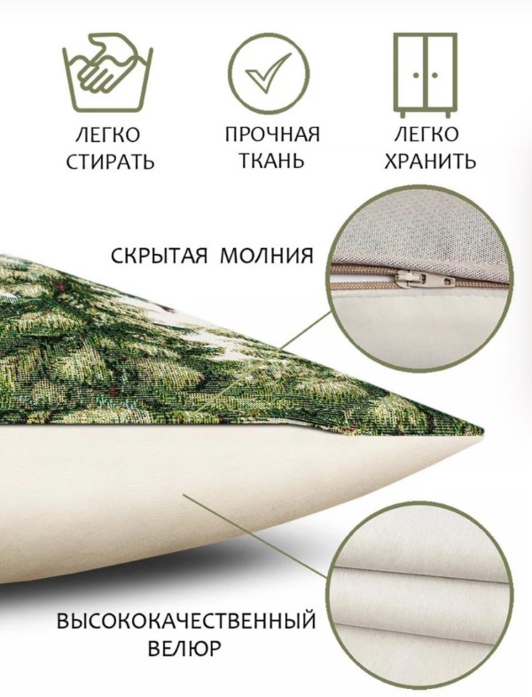 Гобеленовая декоративная наволочка с красочным рисунком поможет украсить диван, кресло на даче, в доме и квартире. Гобелен - ткань с правильным переплетением пряжи, сотканная из шерстяных, синтетических и хлопчатобумажных нитей. Добавление акрила и полиэстера дает возможность сохранять цветовую насыщенность, износостойкость и предотвращает усадку и потерю цвета. Ткань для наволочек закупается на двух лучших ткацких фабриках Испании, высокий уровень качества которых подтвержден сертификатом качества OEKO-TEX Standard 100 и многолетней безупречной работой на Европейском рынке. Наволочка подходит для подушек размером от 45 до 50 см, снабжена молнией.