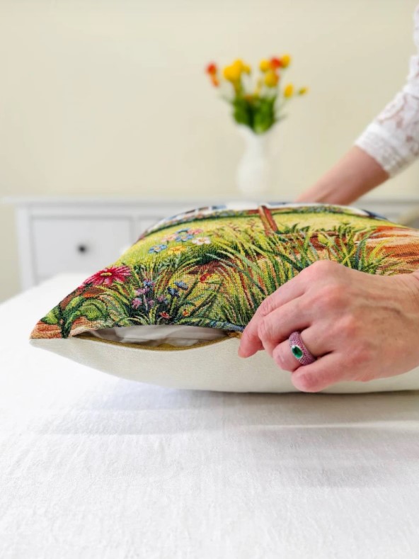 Гобеленовая декоративная наволочка с красочным рисунком поможет украсить диван, кресло на даче, в доме и квартире. Гобелен - ткань с правильным переплетением пряжи, сотканная из шерстяных, синтетических и хлопчатобумажных нитей. Добавление акрила и полиэстера дает возможность сохранять цветовую насыщенность, износостойкость и предотвращает усадку и потерю цвета. Ткань для наволочек закупается на двух лучших ткацких фабриках Испании, высокий уровень качества которых подтвержден сертификатом качества OEKO-TEX Standard 100 и многолетней безупречной работой на Европейском рынке. Наволочка подходит для подушек размером от 45 до 50 см, снабжена молнией.