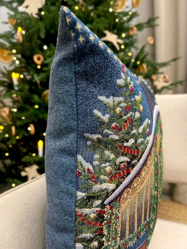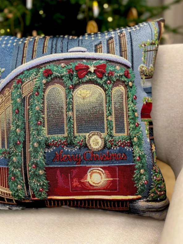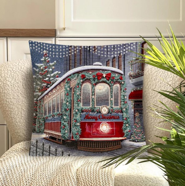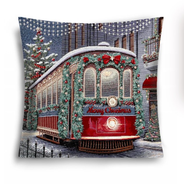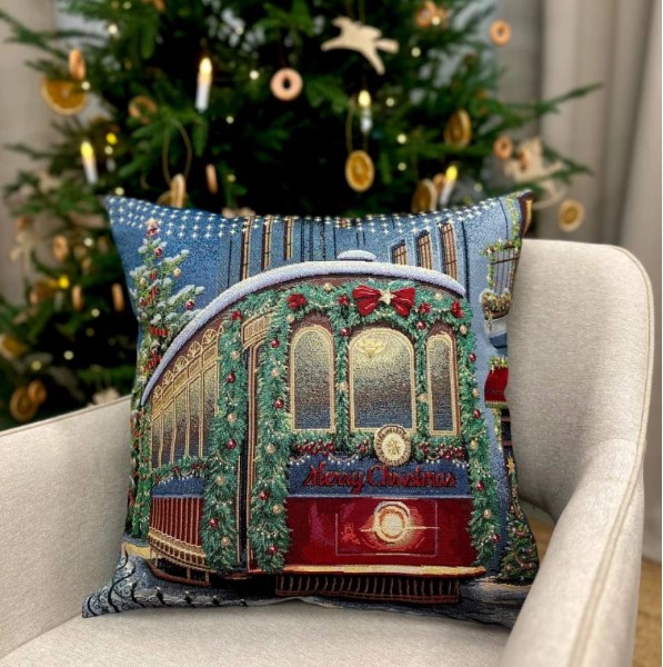 Декоративная наволочка "Гобелен" Зима Вена Трамвай серебро 45*45 (±2) см