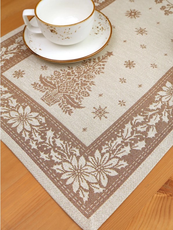 Столовое белье Гобелен можно использовать для сервировки праздничного и повседневного стола, защиты мебели от капель, царапин и горячей посуды, а также в качестве декоративного элемента. Гобелен-ткань с правильным переплетением пряжи, имеющий множество различных оттенков и расцветок. Это плотный и тяжелый материал, сотканный из шерстяных, синтетических и хлопчатобумажных нитей. Благодаря своему составу он еще и экологичен. Гобеленовые узоры – самые прочные и стойкие к истиранию и выцветанию за счет переплетения нитей разных цветов, а не окрашивания ткани. Ткань для столового текстиля закупается на двух лучших ткацких фабриках Испании, высокий уровень качества которых подтвержден сертификатом качества OEKO-TEX Standard 100 и многолетней безупречной работой на Европейском рынке.
