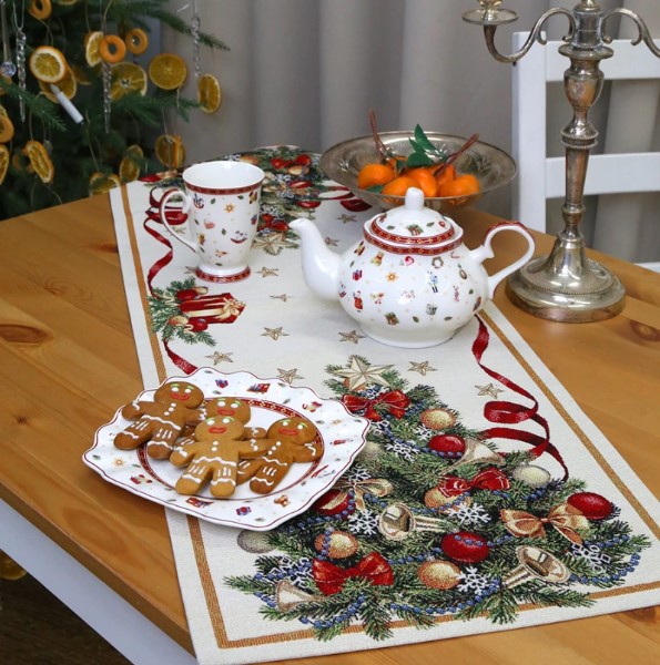 Дорожка на стол "Гобелен" Новогодний пир золото 44*100 см