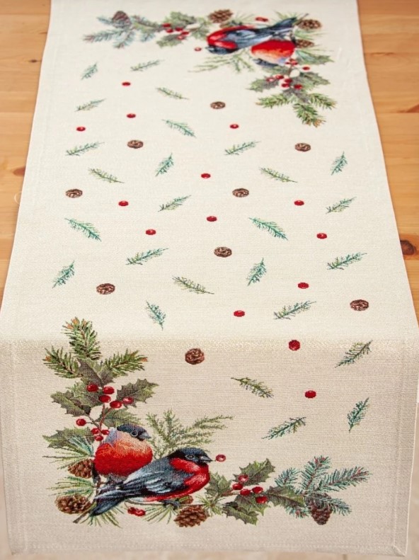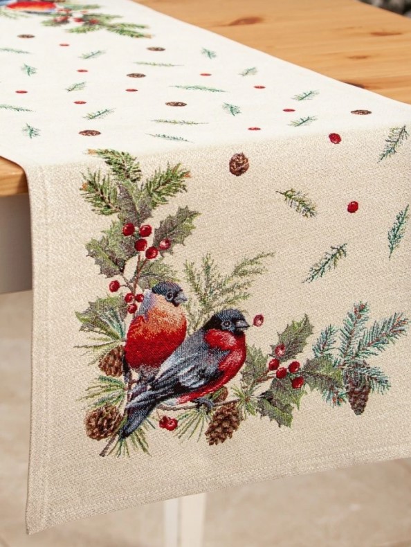 Столовое белье Гобелен можно использовать для сервировки праздничного и повседневного стола, защиты мебели от капель, царапин и горячей посуды, а также в качестве декоративного элемента. Гобелен-ткань с правильным переплетением пряжи, имеющий множество различных оттенков и расцветок. Это плотный и тяжелый материал, сотканный из шерстяных, синтетических и хлопчатобумажных нитей. Благодаря своему составу он еще и экологичен. Гобеленовые узоры – самые прочные и стойкие к истиранию и выцветанию за счет переплетения нитей разных цветов, а не окрашивания ткани.
