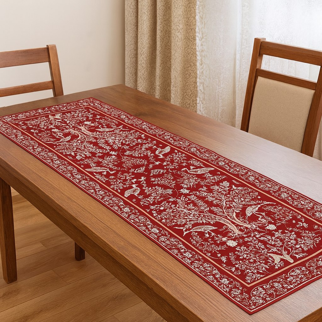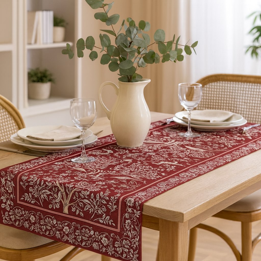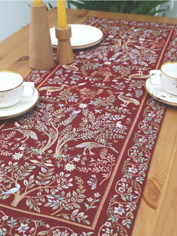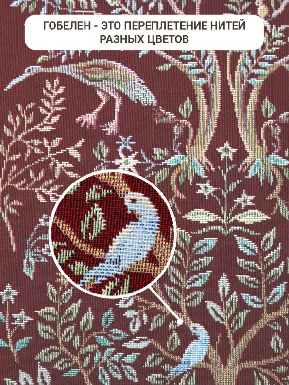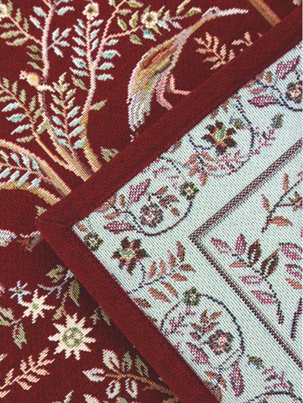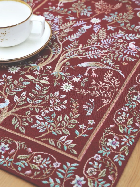 Столовое белье Гобелен можно использовать для сервировки праздничного и повседневного стола, защиты мебели от капель, царапин и горячей посуды, а также в качестве декоративного элемента. Гобелен-ткань с правильным переплетением пряжи, имеющий множество различных оттенков и расцветок. Это плотный и тяжелый материал, сотканный из шерстяных, синтетических и хлопчатобумажных нитей. Благодаря своему составу он еще и экологичен. Гобеленовые узоры – самые прочные и стойкие к истиранию и выцветанию за счет переплетения нитей разных цветов, а не окрашивания ткани.