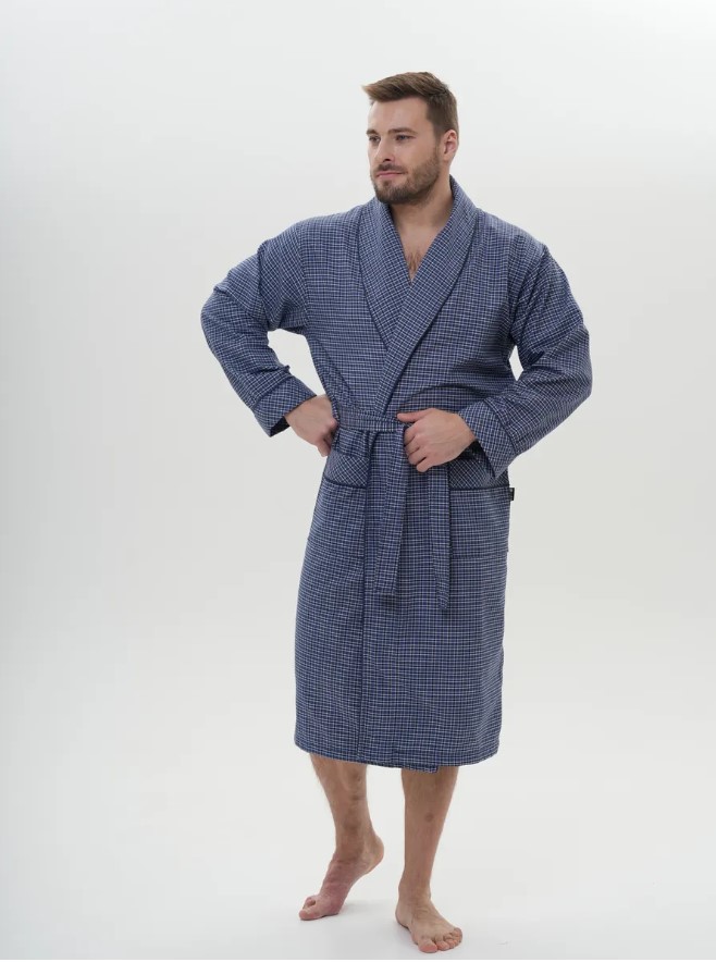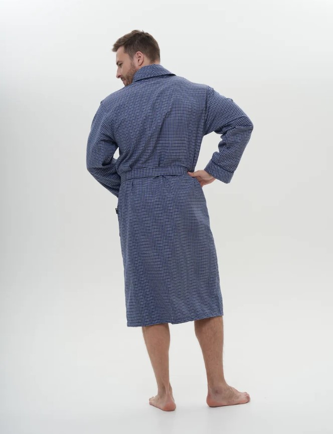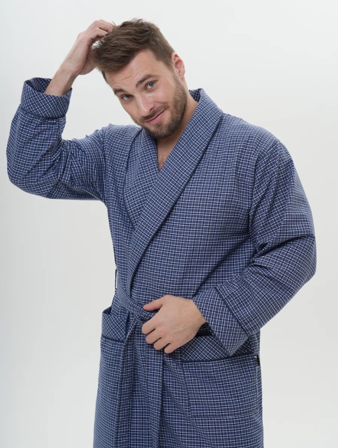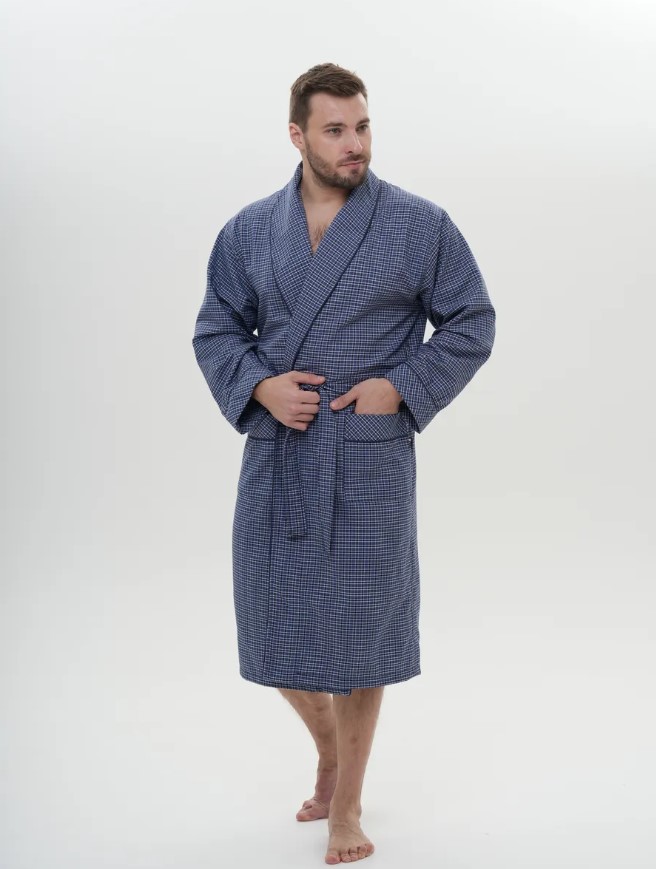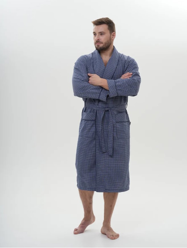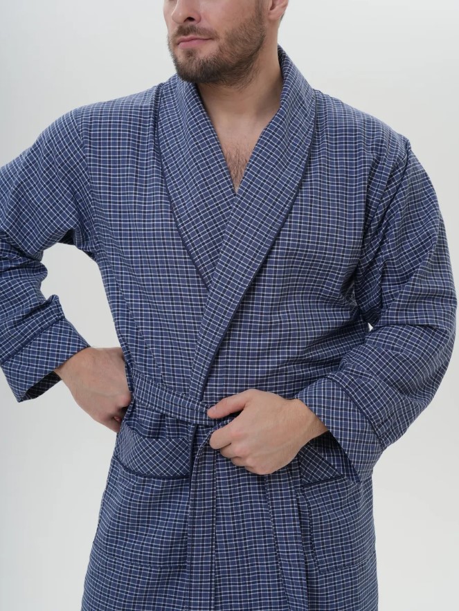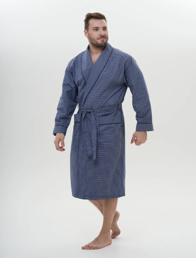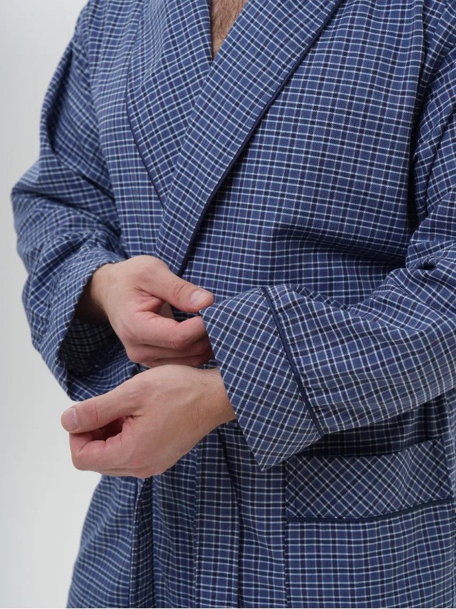 Шикарная коллекция стильных мужских халатов Arman из 100 % хлопка придется по душе джентльменам, предпочитающим классику. Модель прямая, средней длины с двумя накладными карманами, классическими прямыми, длинными рукавами и шалевым воротником. Стильный дизайн в элегантную клетку дополнен кантом в тон изделия. Благодаря ткани из натурального хлопка, изделие очень приятное на ощупь, легкое и гигроскопичное. Такой вариант идеально подойдет для лета, а также тем мужчинам, которые не любят тяжелые халаты.