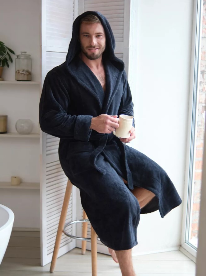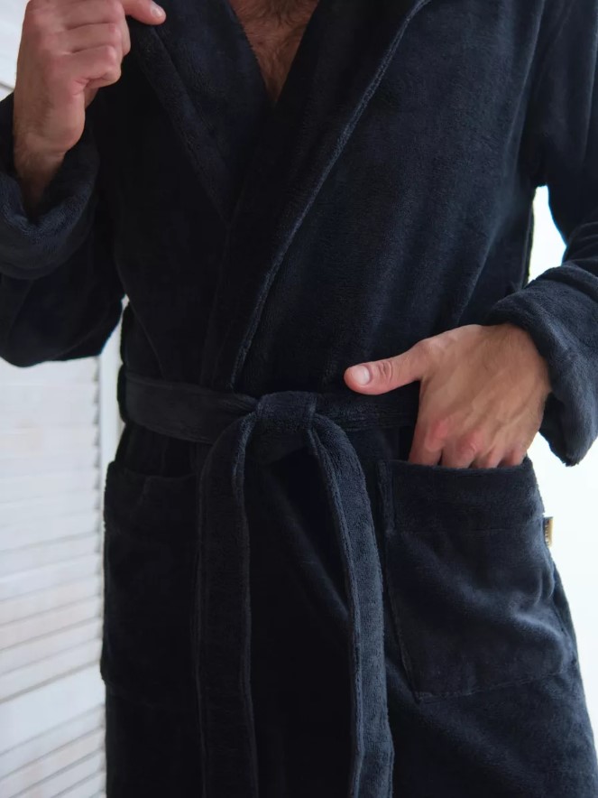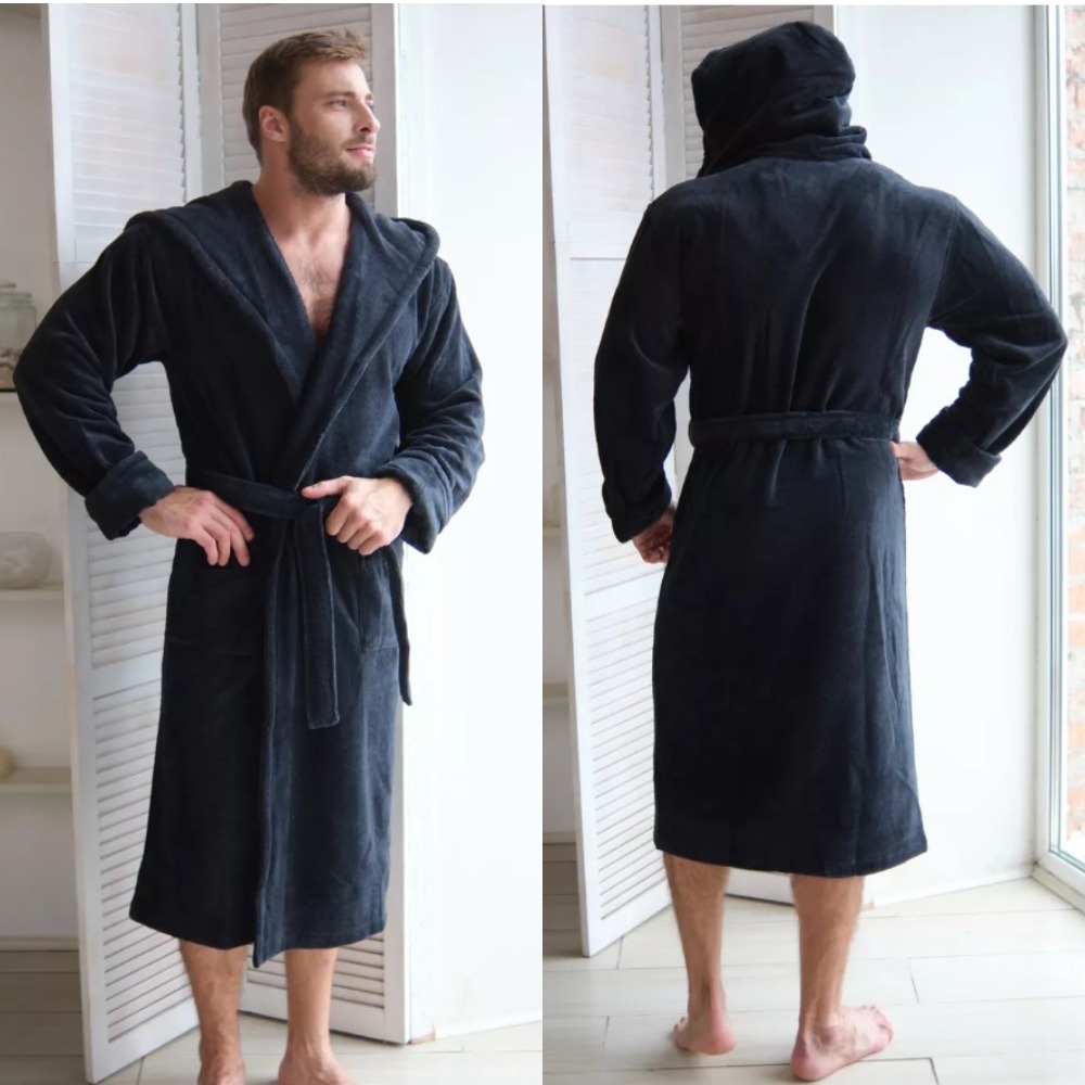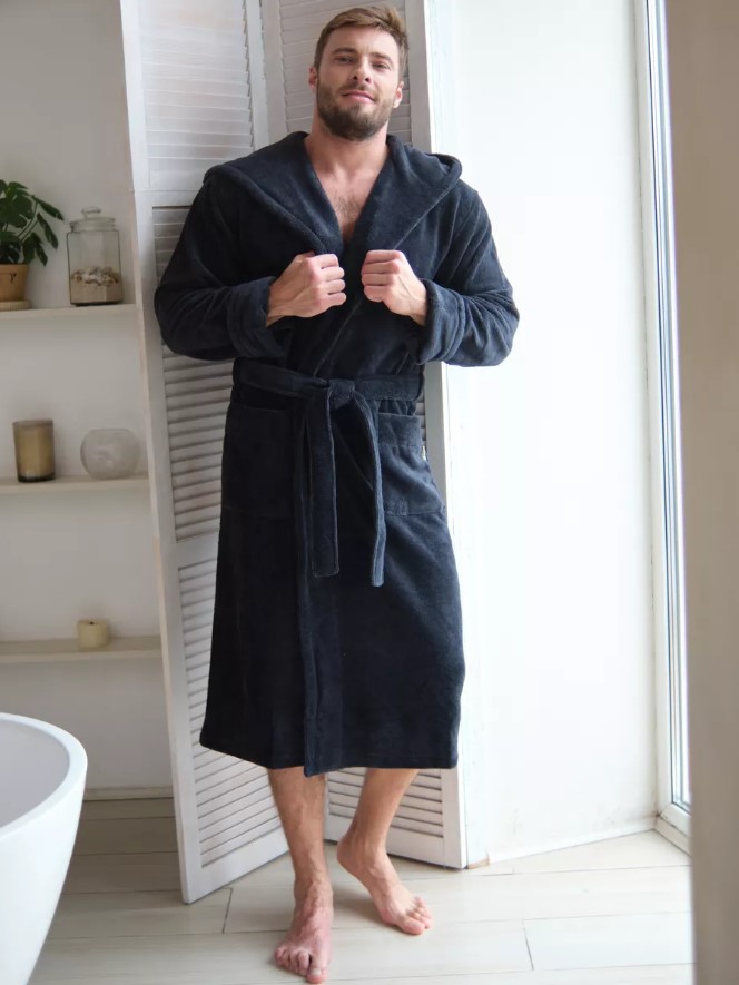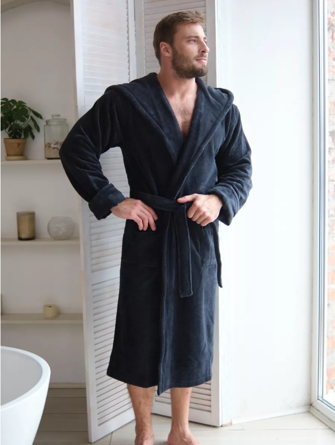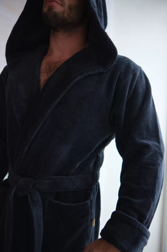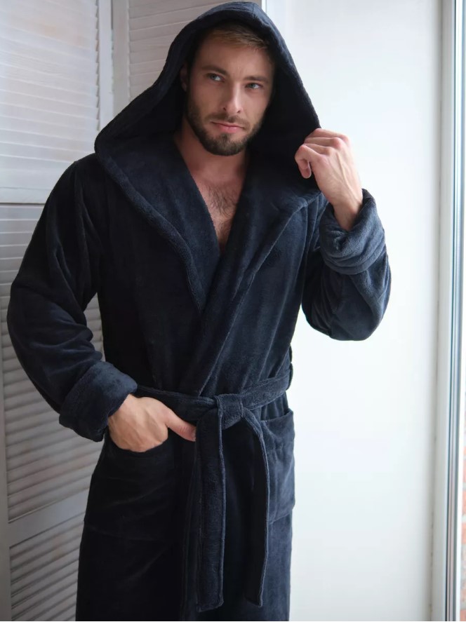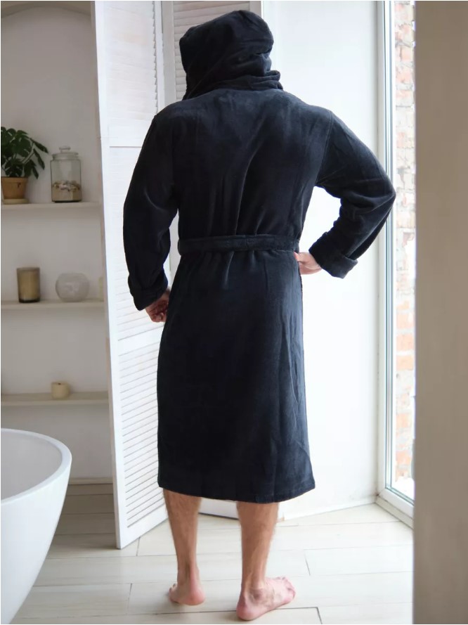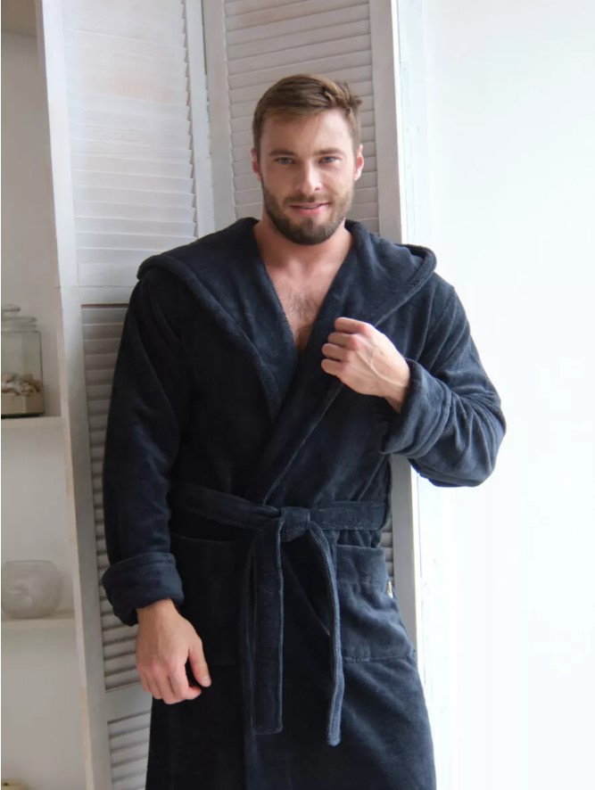 Велюровый халат c капюшоном Vien для стильных мужчин, предпочитающих комфорт в одежде. Манжет рукава легко подвернуть по длине. Шлевки пояса двухуровневые, для регулировки по росту. Карманы накладные, глубокие. Изделие хорошо сидит по фигуре и имеет комфортную длину. Теплый велюровый удлиненный халат с большими карманами представлен в разных размерах, темного насыщенного цвета, однотонные, манжеты на рукавах отворачиваемые, удобно регулируемые, шлевки для пояса двухуровневые для регулировки по росту. Стильный и молодежный фасон домашнего халата имеет свободный крой, в составе Double touch cotton - натуральная хлопковая (70%) ткань из Турции и микрофибра (30%), благодаря которым халат является мягким, пушистым, утепленным и подходит для зимних семейных вечеров.