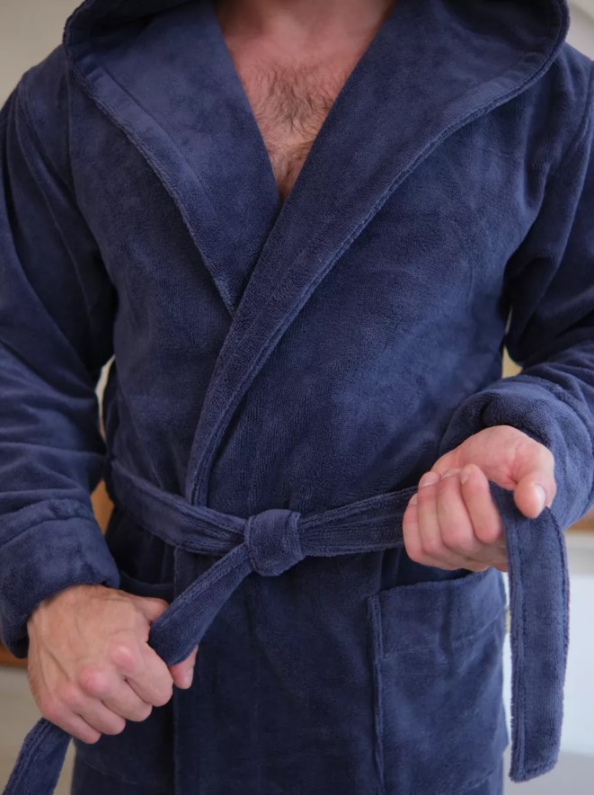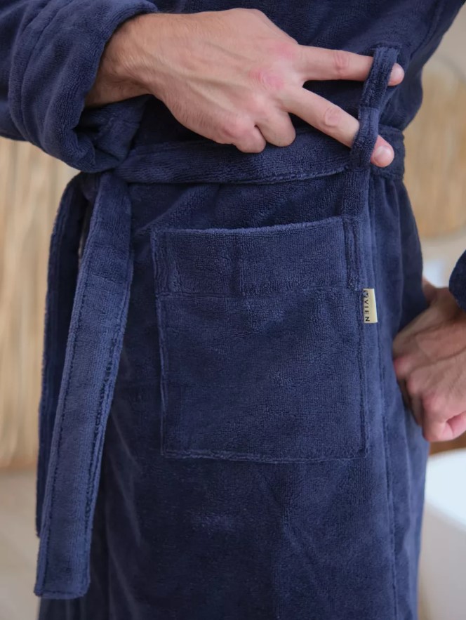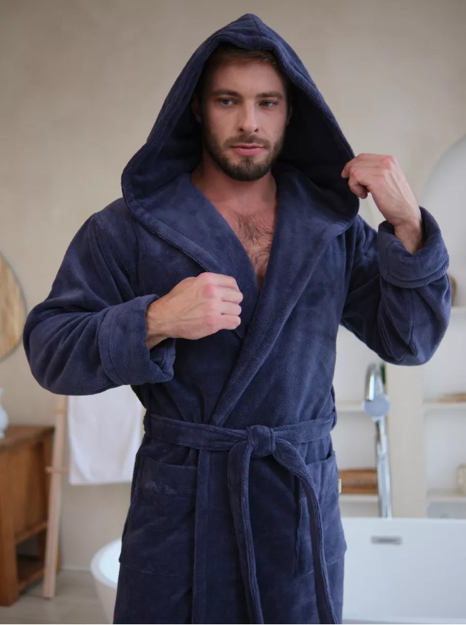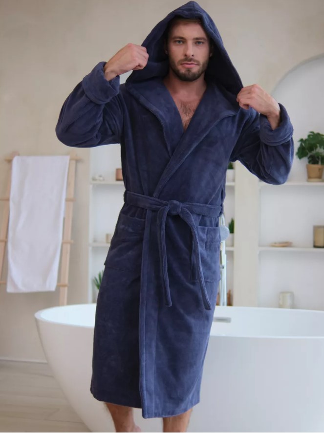 Велюровый халат c капюшоном Vien для стильных мужчин, предпочитающих комфорт в одежде. Манжет рукава легко подвернуть по длине. Шлевки пояса двухуровневые, для регулировки по росту. Карманы накладные, глубокие. Изделие хорошо сидит по фигуре и имеет комфортную длину. Теплый велюровый удлиненный халат с большими карманами представлен в разных размерах, темного насыщенного цвета, однотонные, манжеты на рукавах отворачиваемые, удобно регулируемые, шлевки для пояса двухуровневые для регулировки по росту. Стильный и молодежный фасон домашнего халата имеет свободный крой, в составе Double touch cotton - натуральная хлопковая (70%) ткань из Турции и микрофибра (30%), благодаря которым халат является мягким, пушистым, утепленным и подходит для зимних семейных вечеров.