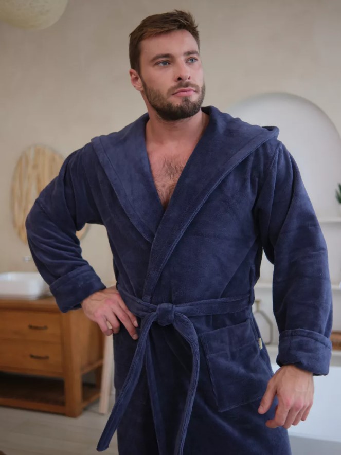 Халат мужской велюровый "Vien" Maximus с капюшоном denim