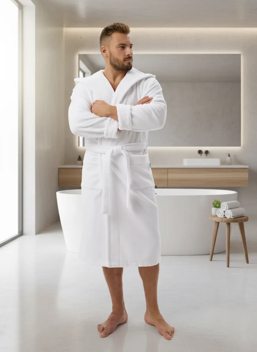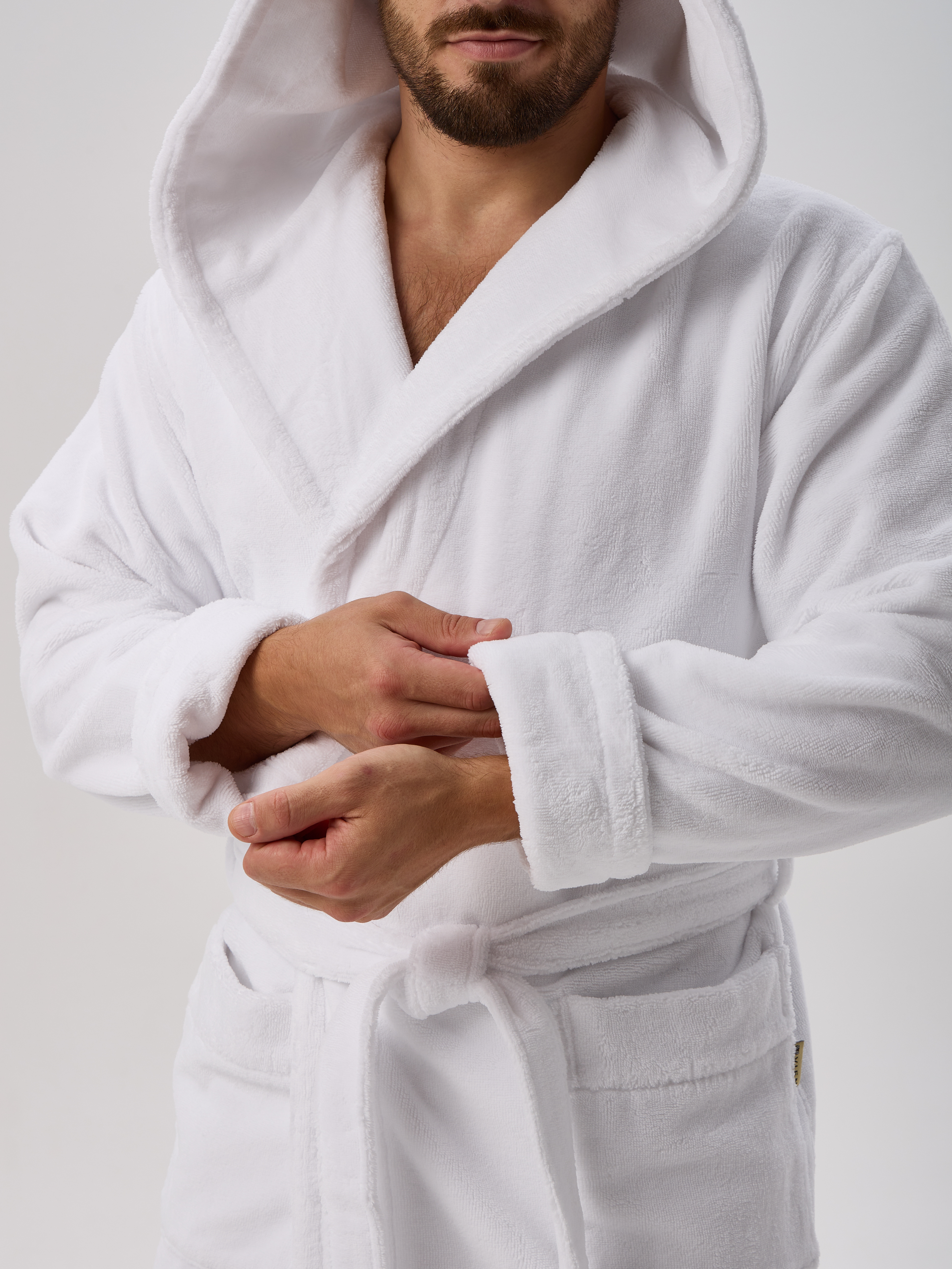 Мужской велюровый халат Максимус — стильное и практичное решение для домашнего отдыха, посещения бани, сауны или бассейна. Модель выполнена из высококачественного материала (70 % турецкого хлопка и 30 % микрофибры), благодаря чему халат получается мягким, пушистым и отлично сохраняет тепло.Удлиненный фасон с свободным кроем подчёркивает современный молодёжный стиль, а продуманные детали делают использование максимально удобным: отворачиваемые манжеты на рукавах, вместительные карманы, двухуровневые шлёвки для пояса, позволяющие регулировать посадку по росту.