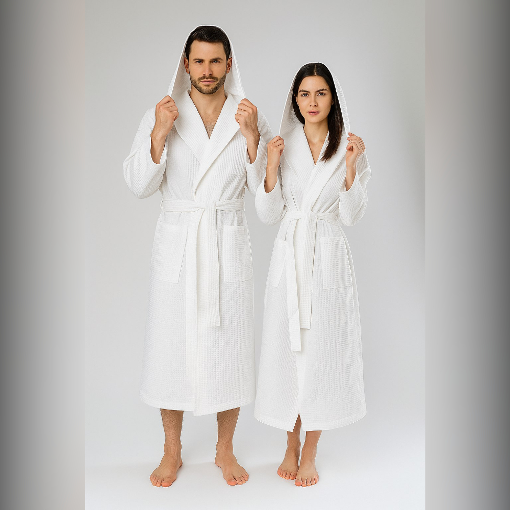 Такие халаты прекрасно впитывают влагу, быстро сохнут, а рельефный рисунок в структуре ткани обеспечивает массажный эффект и принесет эстетическое удовольствие.