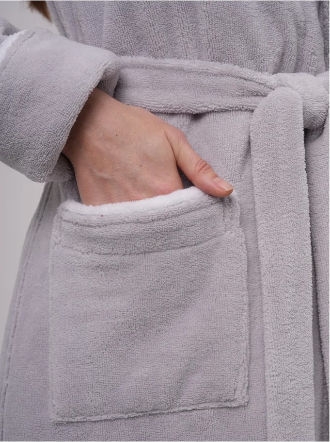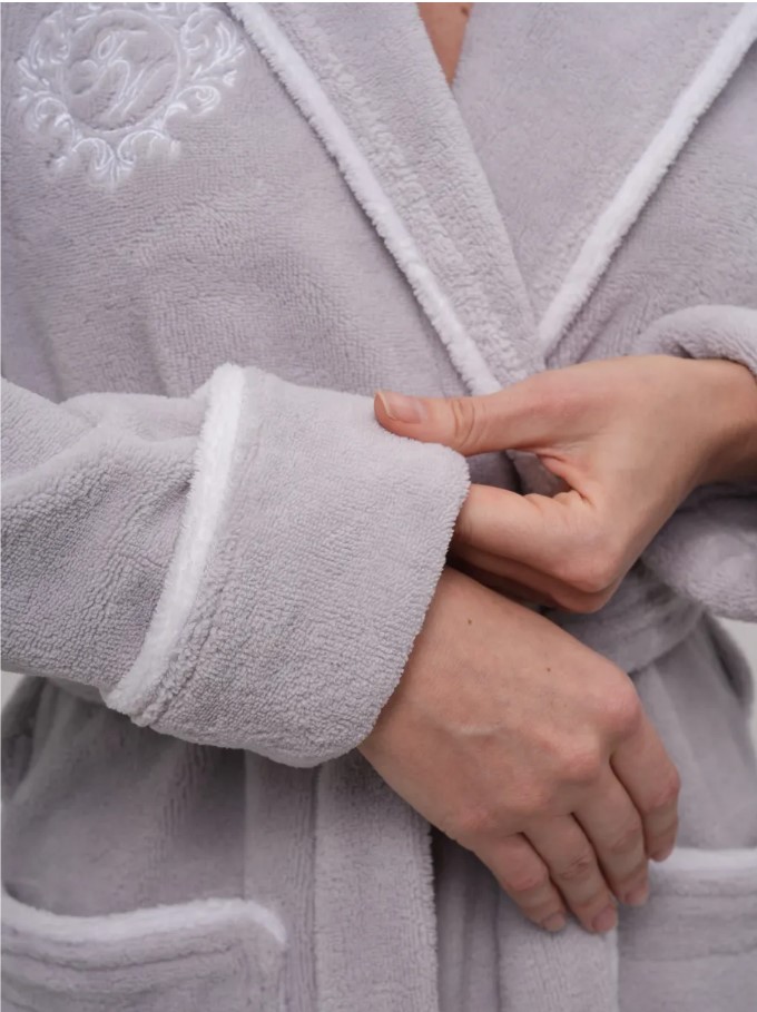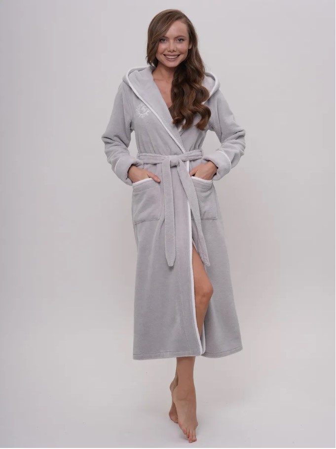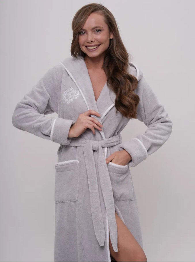 Элегантный женский халат бренда Vien классического фасона на запахе со съемным поясом. Манжет рукава легко подвернуть по длине. По бокам два глубоких, накладных кармана. Изделие хорошо сидит по фигуре и имеет комфортную длину. Внешняя сторона ткани - бархатистый велюр, внутренняя - мягкая махра. Благодаря особому переплетению бамбуковых волокон материал обладает «дышащими» свойствами и сохраняет приятную для кожи прохладу. Обладает высокой гигроскопичностью и особенными природными свойствами – антибактериальными, дезодорирующими и останавливающими рост бактерий. Данные свойства ткани сохраняются даже после пятидесяти стирок. Изделия из бамбукового волокна обладают стойкостью к условиям машинной стирки.