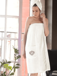 Элегантный женский халат бренда Vien классического фасона на запахе со съемным поясом, нежное сочетание рисунков с жаккардовой фактурой придает модели притягательное очарование. Манжет рукава легко подвернуть по длине. По бокам халата два кармана. Внешняя сторона ткани - бархатистый велюр, внутренняя - мягкая махра. Благодаря особому переплетению бамбуковых волокон материал обладает «дышащими» свойствами и сохраняет приятную для кожи прохладу. Обладает высокой гигроскопичностью и особенными природными свойствами – антибактериальными, дезодорирующими и останавливающими рост бактерий. Данные свойства ткани сохраняются даже после пятидесяти стирок. Изделия из бамбукового волокна обладают стойкостью к условиям машинной стирки.