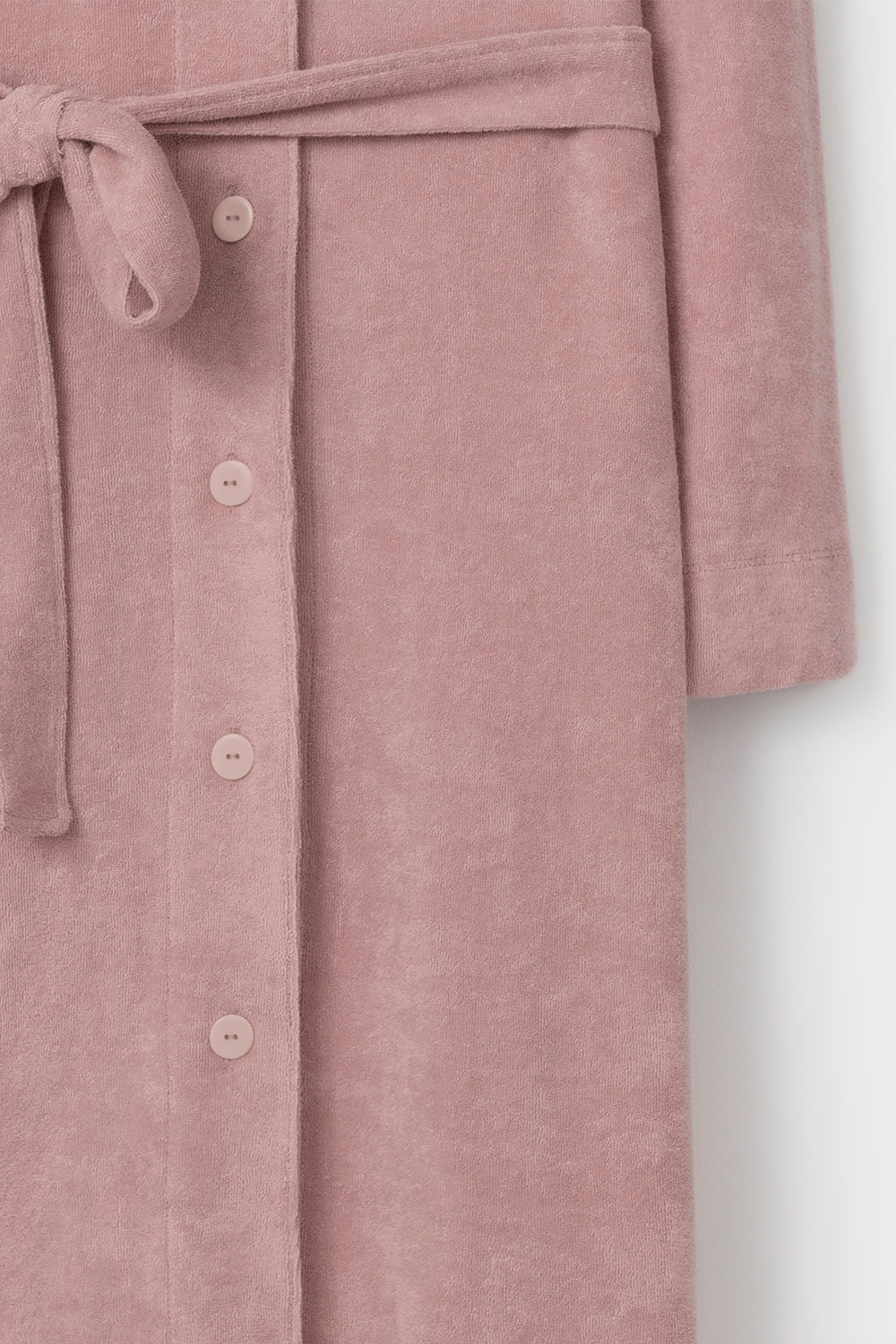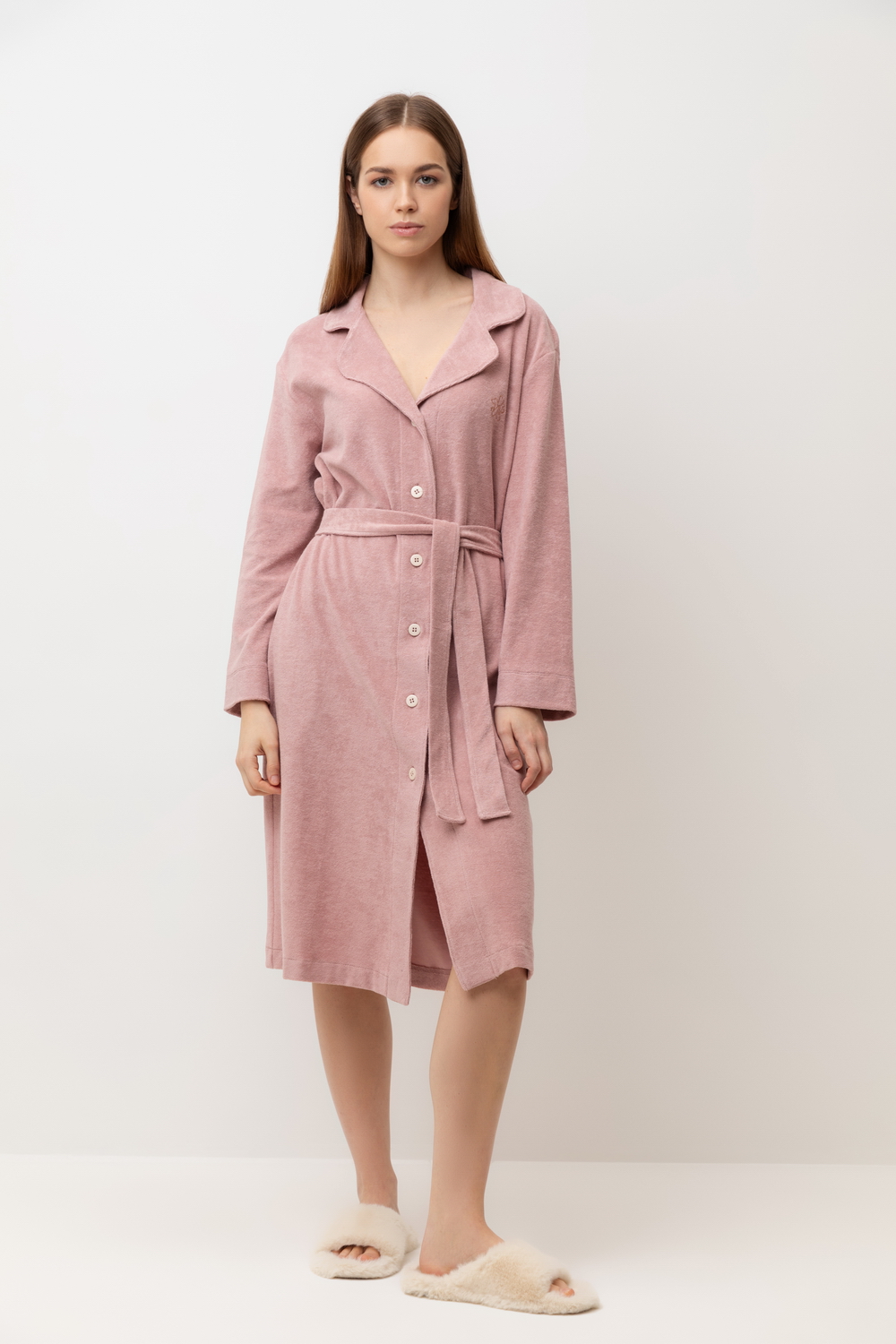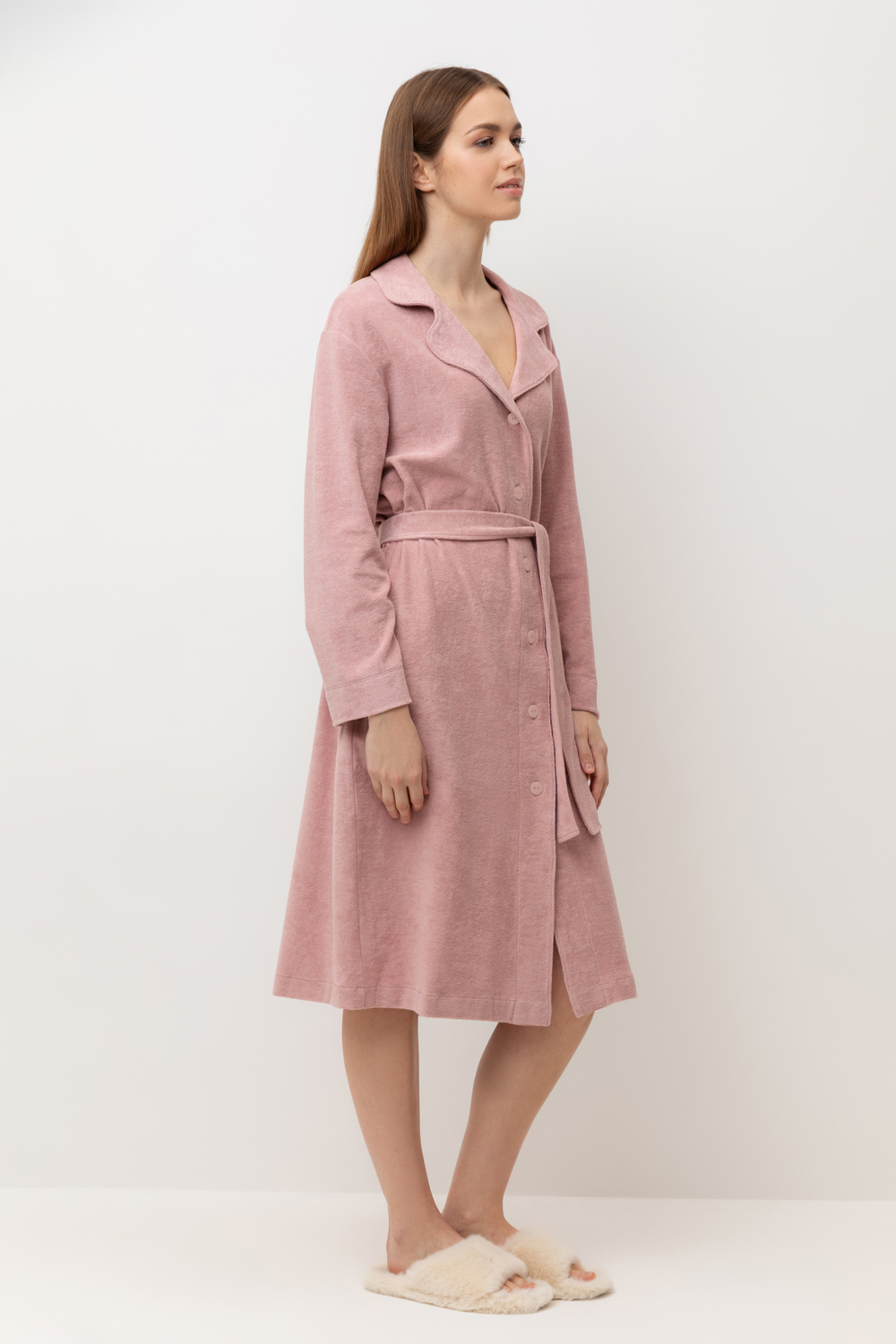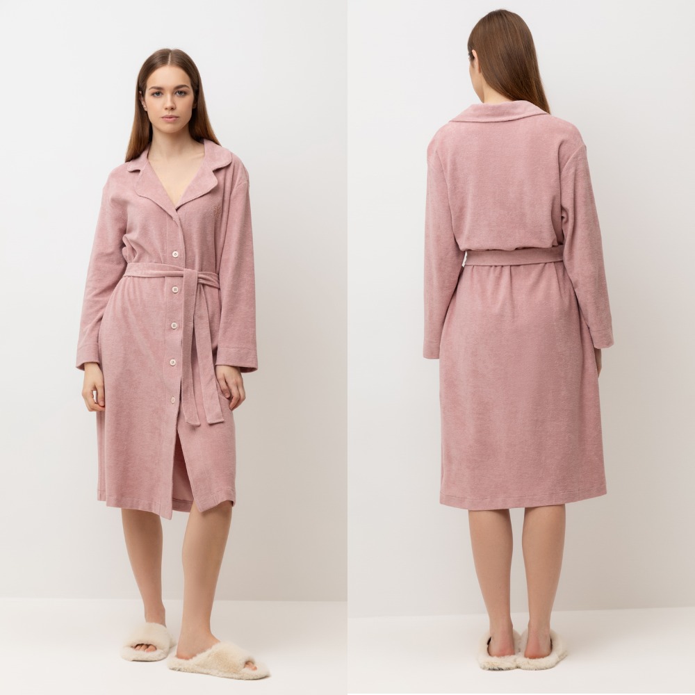 Халат из 100% хлопка — воплощение домашнего уюта, выполнен в нежном пудрово-розовом оттенке, отличается лаконичным и элегантным дизайном, имеет классический крой с лёгким расклешением, оснащён удобной застёжкой на пуговицы и практичным поясом, который надёжно фиксирует халат на талии, длинные рукава и оптимальная длина изделия обеспечивают комфорт и свободу движений, мягкая хлопковая ткань приятна на ощупь, отлично пропускает воздух, не вызывает раздражения кожи, подходит для ежедневного использования дома, посещения бани или отдыха после трудового дня, практичный и стильный вариант для создания расслабленных образов, сочетает в себе качество натуральных материалов и продуманный крой, станет незаменимой частью домашнего гардероба, подарит ощущение тепла и уюта в любое время года.