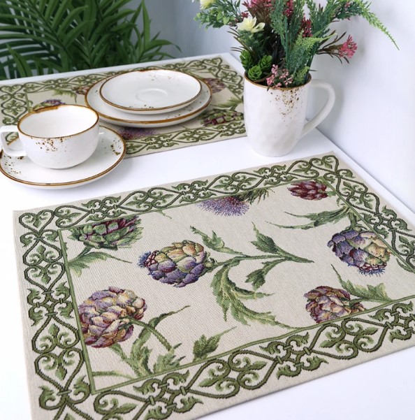 Столовое белье Гобелен можно использовать для сервировки праздничного и повседневного стола, защиты мебели от капель, царапин и горячей посуды, а также в качестве декоративного элемента. Гобелен-ткань с правильным переплетением пряжи, имеющий множество различных оттенков и расцветок. Это плотный и тяжелый материал, сотканный из шерстяных, синтетических и хлопчатобумажных нитей. Благодаря своему составу он еще и экологичен. Гобеленовые узоры – самые прочные и стойкие к истиранию и выцветанию за счет переплетения нитей разных цветов, а не окрашивания ткани.