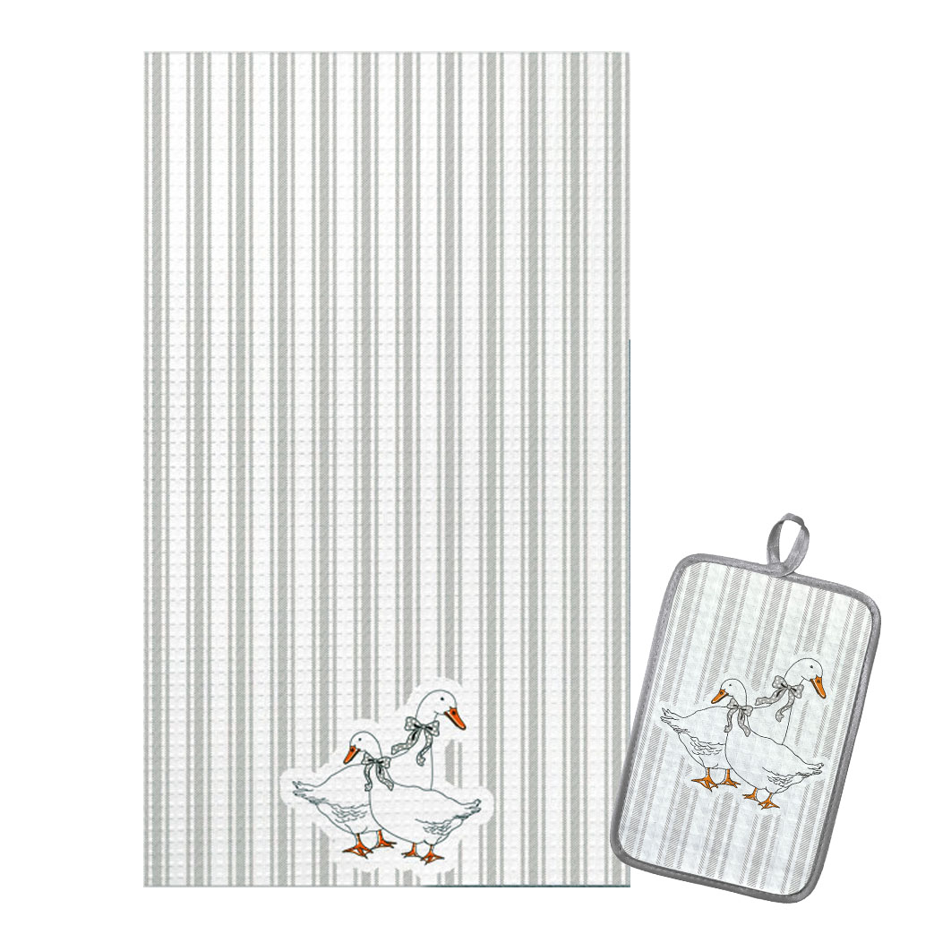 Комплект для кухни 2 предмета "Гранд Стайл" гуси и полоса 35*60 см , 14*22 см