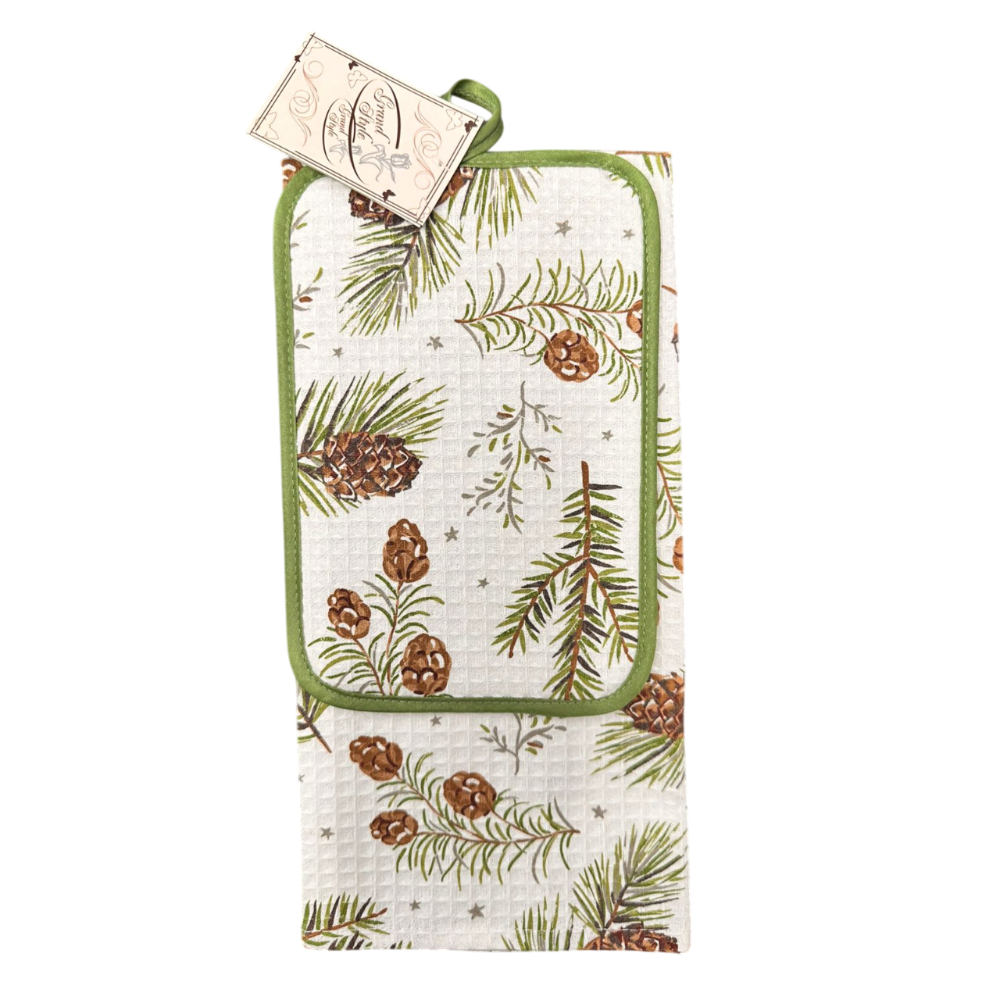Набор из кухонного полотенца и прихватки — это стильное и практичное решение для вашей кухни. Полотенце размером 35х60 см и прихватка 14х22 см выполнены из 100% хлопка что делает их мягкими, долговечными и экологичными. Материал быстро сохнет, устойчив к износу и сохраняет яркость рисунка, нанесенного методом шелкографии. Этот набор станет не только удобным помощником в быту, но и стильным дополнением к интерьеру вашей кухни. Для удобства использования у полотенца и у прихватки имеется петелька для подвеса на полотенцедержатель.