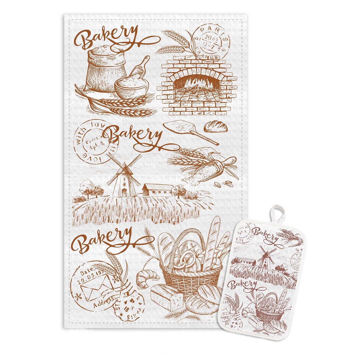 Набор из кухонного полотенца и прихватки — это стильное и практичное решение для вашей кухни. Полотенце размером 35х60 см и прихватка 14х22 см выполнены из 100% хлопка что делает их мягкими, долговечными и экологичными. Материал быстро сохнет, устойчив к износу и сохраняет яркость рисунка, нанесенного методом шелкографии. Этот набор станет не только удобным помощником в быту, но и стильным дополнением к интерьеру вашей кухни. Для удобства использования у полотенца и у прихватки имеется петелька для подвеса на полотенцедержатель.