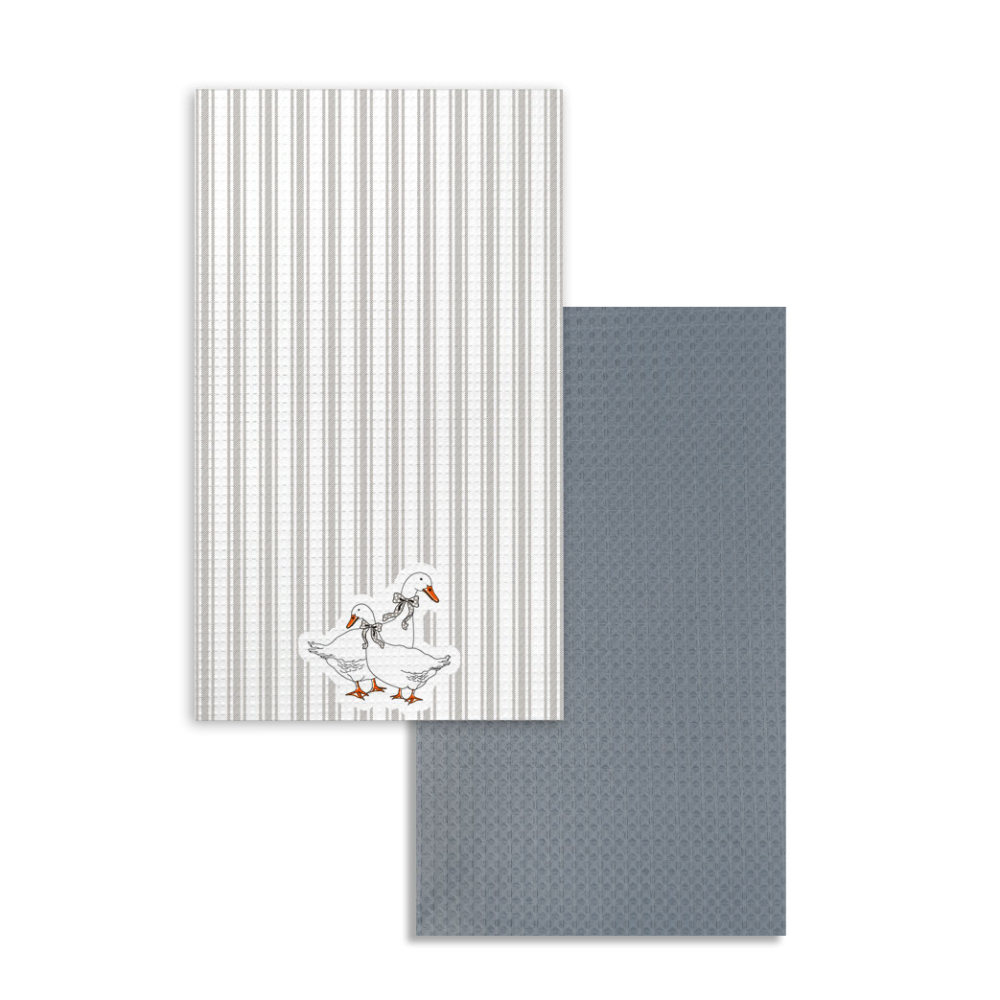 Комплект кухонных полотенец с петельками 2 шт "Гранд Стиль" гуси полоса 35*60 см