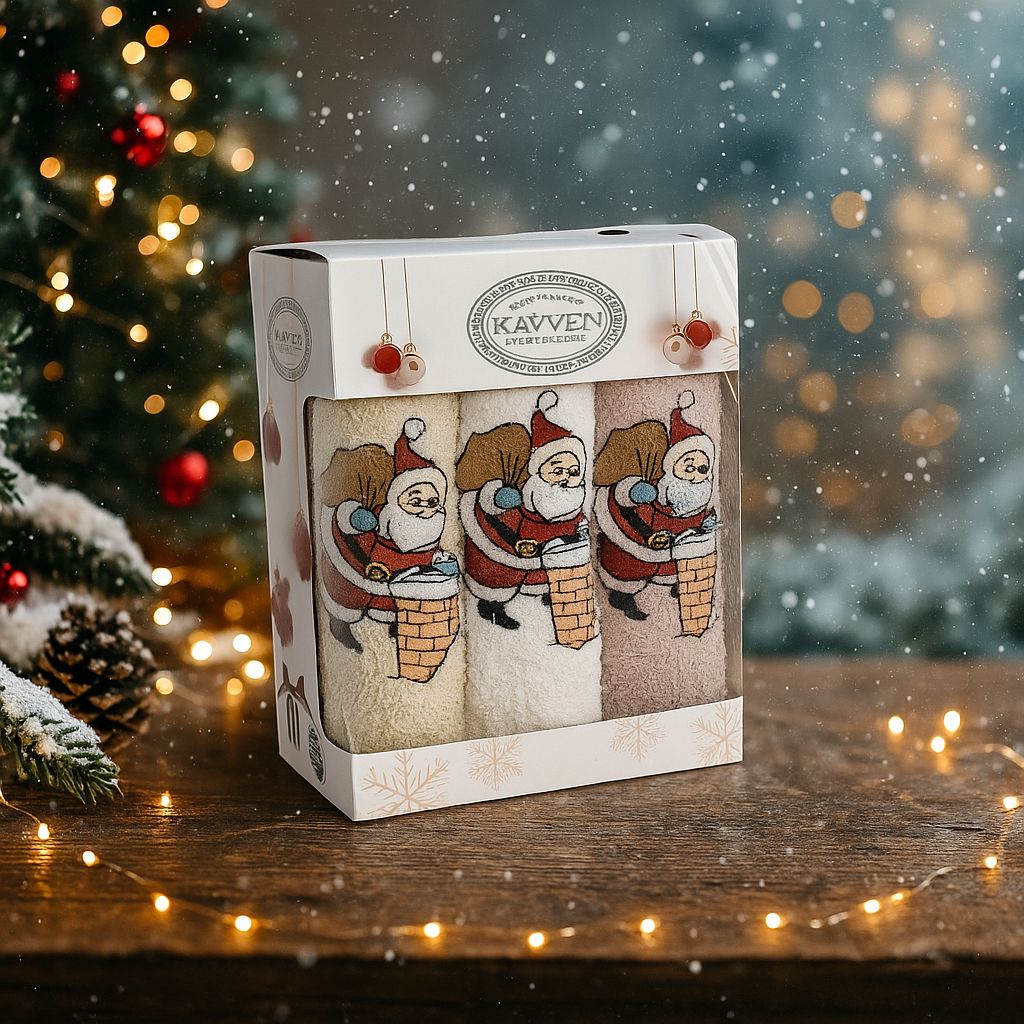 Комплект махровых полотенец для кухни 3 шт. "Karven" Новый Год Дед Мороз с подарками/v6 30*50 см