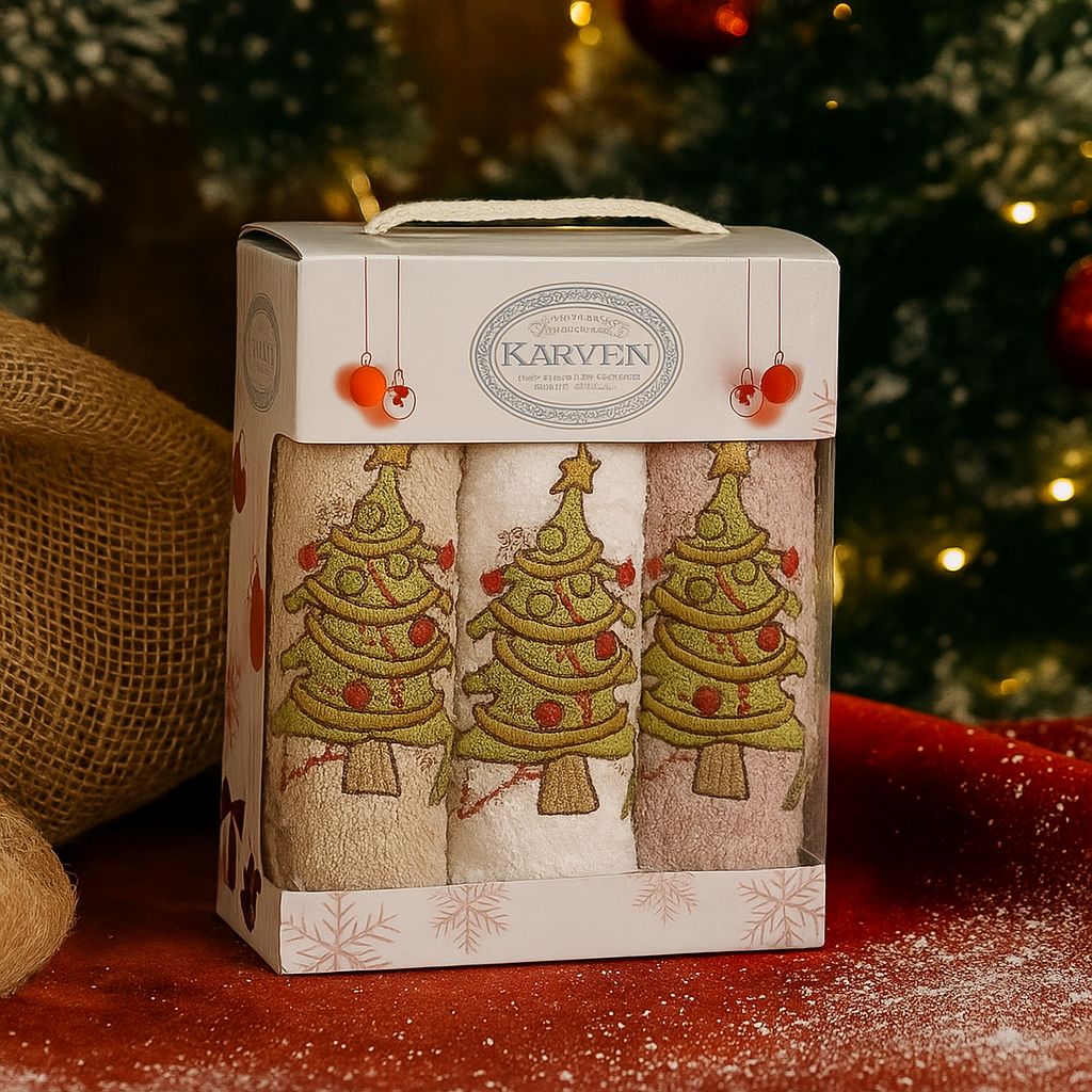 Комплект махровых полотенец для кухни 3 шт. "Karven" Новый Год Елки/v4 30*50 см