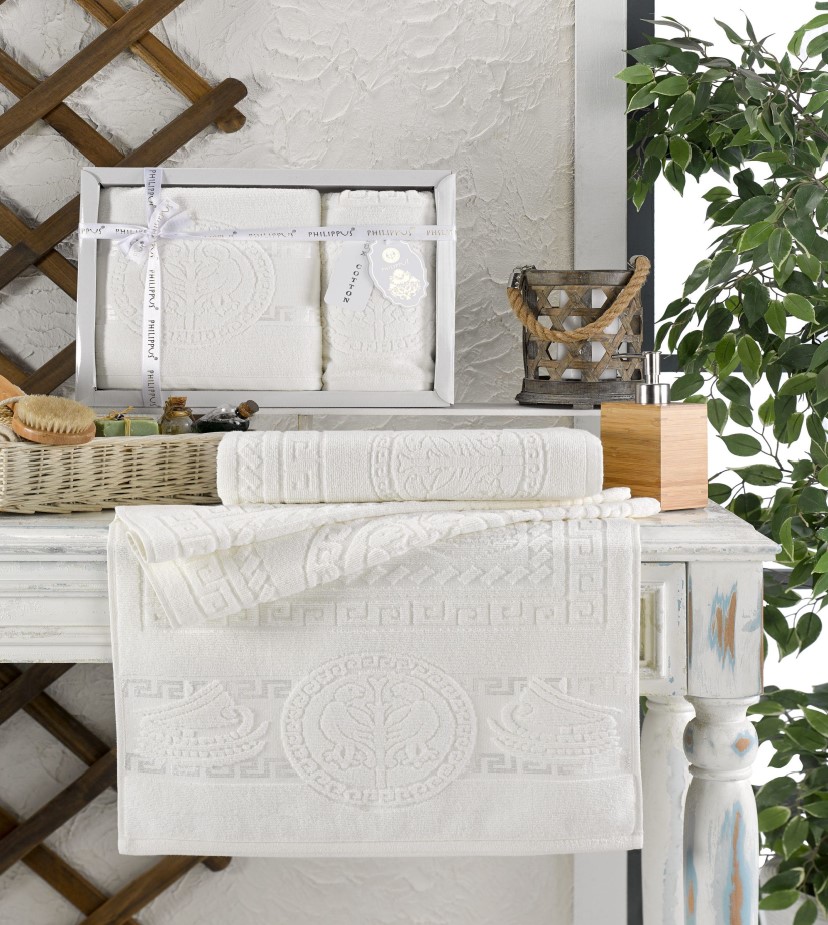 Жаккардовые полотенца линейки Пилиумунус — качество встречается с утончённым уютом! Изготовленные из 100% хлопка, эти практичные полотенца порадуют вас не только изысканным жаккардовым узором в классическом античном стиле, но и нежной махровой текстурой. Плотность ткани — 500 г/м² — обеспечивает превосходную впитываемость и стойкость к износу: полотенца сохраняют форму даже после множества стирок. Комплект состоит из банного полотенца (70×140 см) для уютного обёртывания после душа и лицевого (50×90 см) для бережного ухода за кожей. Нейтральный оттенок легко впишется в любой интерьер ванной комнаты. Элегантная упаковка делает набор универсальным подарком — для себя или близких. Обновите обстановку с полотенцами Пилиумунус: сочетание удобства, функциональности и стиля в каждой детали превратит ежедневные ритуалы ухода за собой в истинное удовольствие!