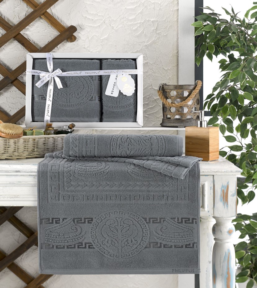 Жаккардовые полотенца линейки Пилиумунус — качество встречается с утончённым уютом! Изготовленные из 100% хлопка, эти практичные полотенца порадуют вас не только изысканным жаккардовым узором в классическом античном стиле, но и нежной махровой текстурой. Плотность ткани — 500 г/м² — обеспечивает превосходную впитываемость и стойкость к износу: полотенца сохраняют форму даже после множества стирок.