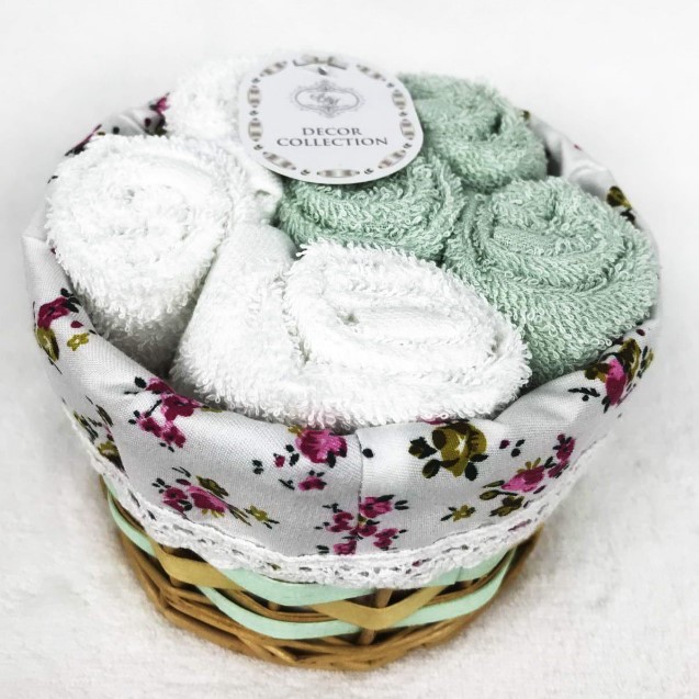 Декоративные салфетки из 100% хлопка представлены в нескольких цветовых решениях, прекрасно впитывают влагу и придают ощущение нежности. Салфетки упакованы в подарочную корзинку, которая будет одинаково хорошо смотреться как на кухне, так и в ванной комнате.